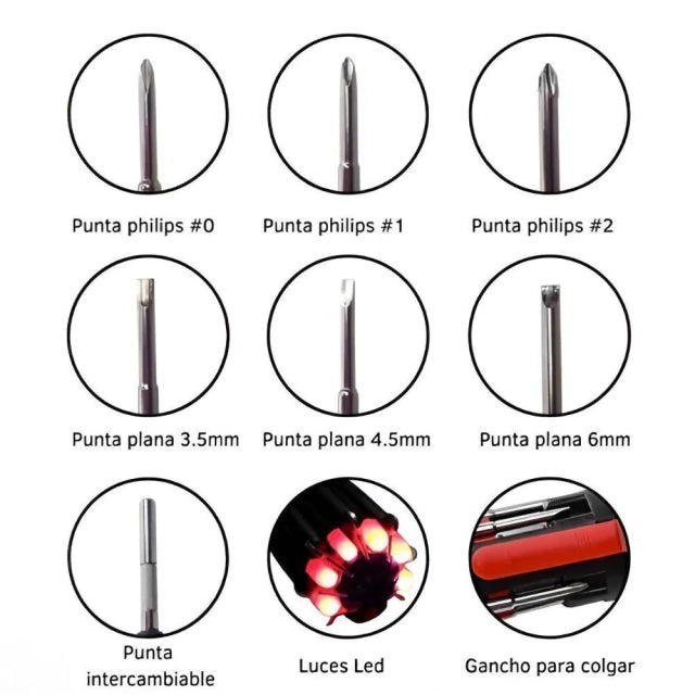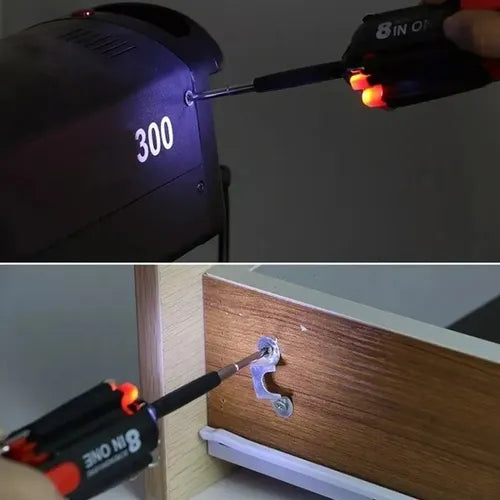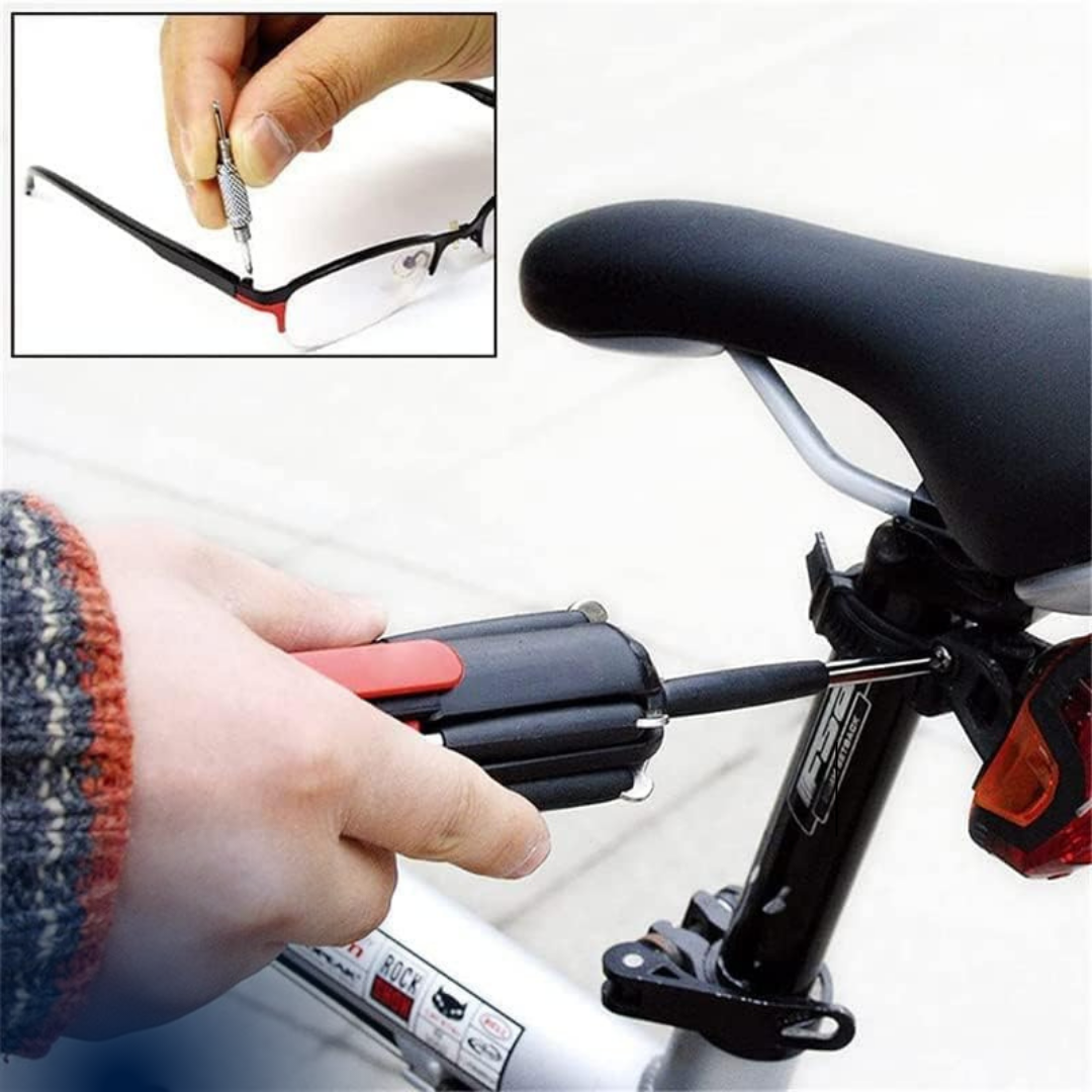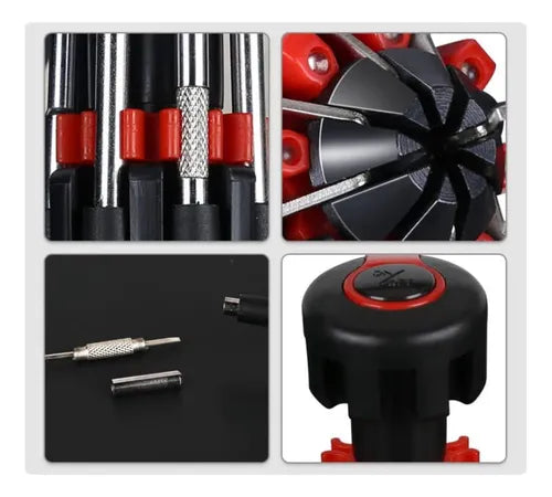 COMBO 2x1 – MULTIFIX 8 EN 1: Destornillador compacto de acero | todo en una sola herramienta.